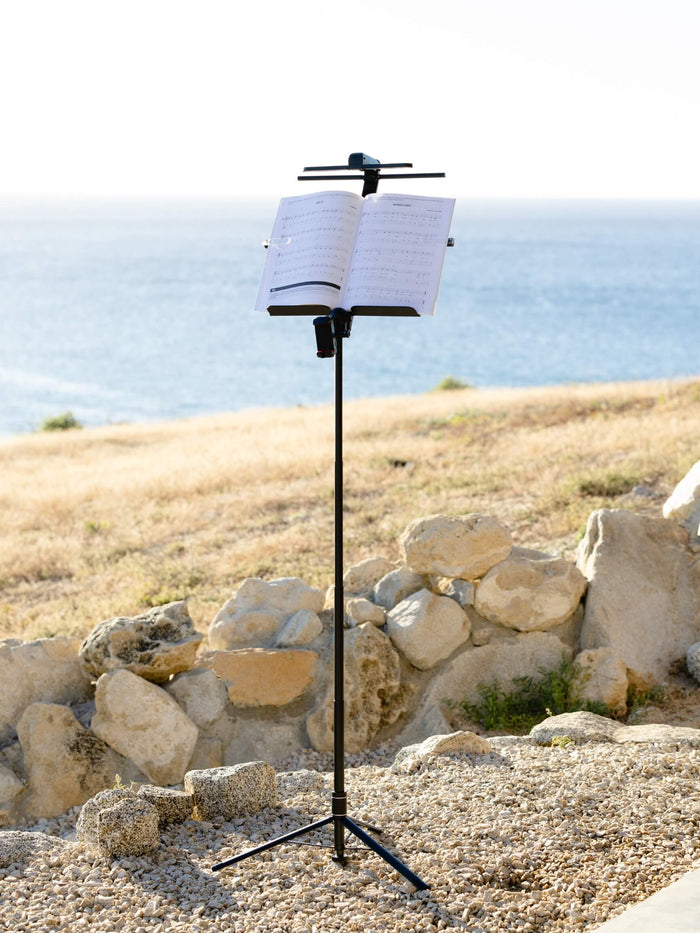 只需輕輕一拉,就可輕鬆將樂譜調整至任意需要的高度(74-168公分(29-66")) 。採用最新專利的中心伸縮桿技術,譜架可與您的動作同步即時停止不動。