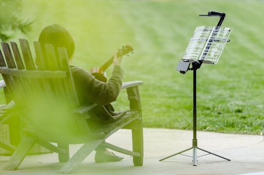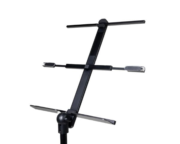- 符合人體工學的視角與可伸縮托架: 置譜托架最多可傾斜 30 度,以便舒適觀看,可容納 A4 至 A3 尺寸樂譜,並配置固定夾防止滑動。