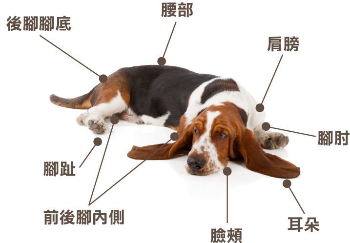 年長犬容易出現壓瘡的部位