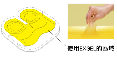 EXGEL能順應身體的流動,並流暢的分散垂直與橫向偏移的壓力。