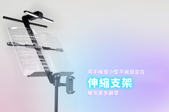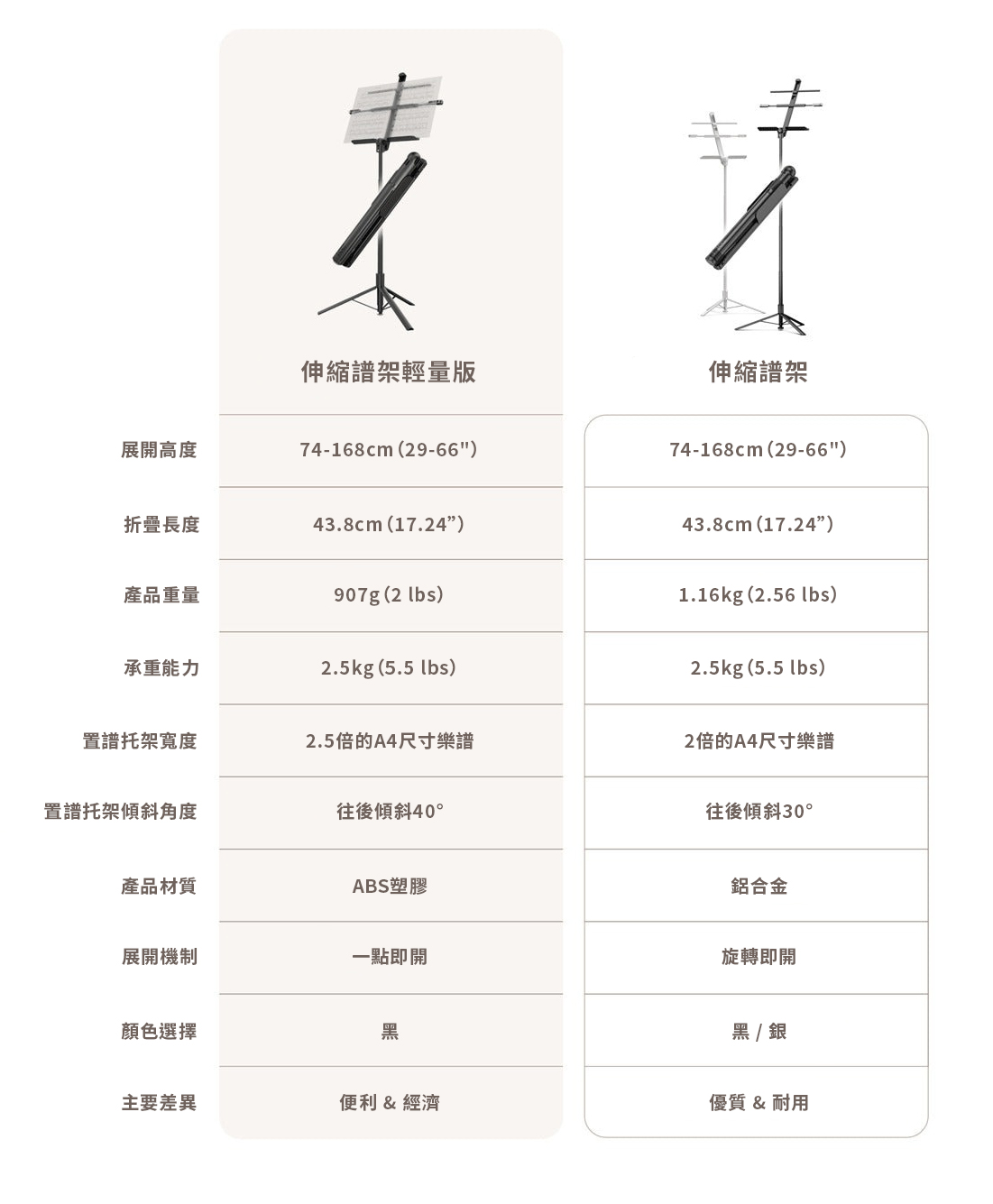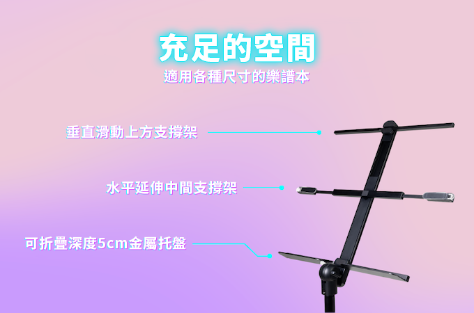 伸縮譜架的輕量版,適合室內使用,更易於攜帶和設置。
