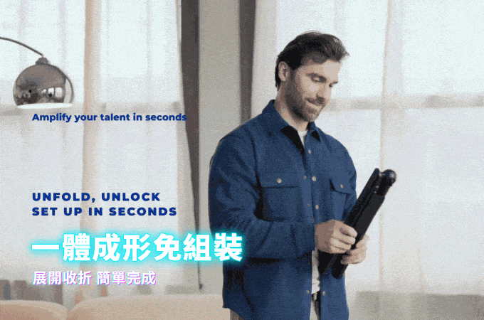 - 超輕量小體積設計: 重量僅0.9公斤,便於攜帶。可摺疊的小巧設計,可輕鬆放入背包,也能單手拿著,適合旅行與戶外表演。
