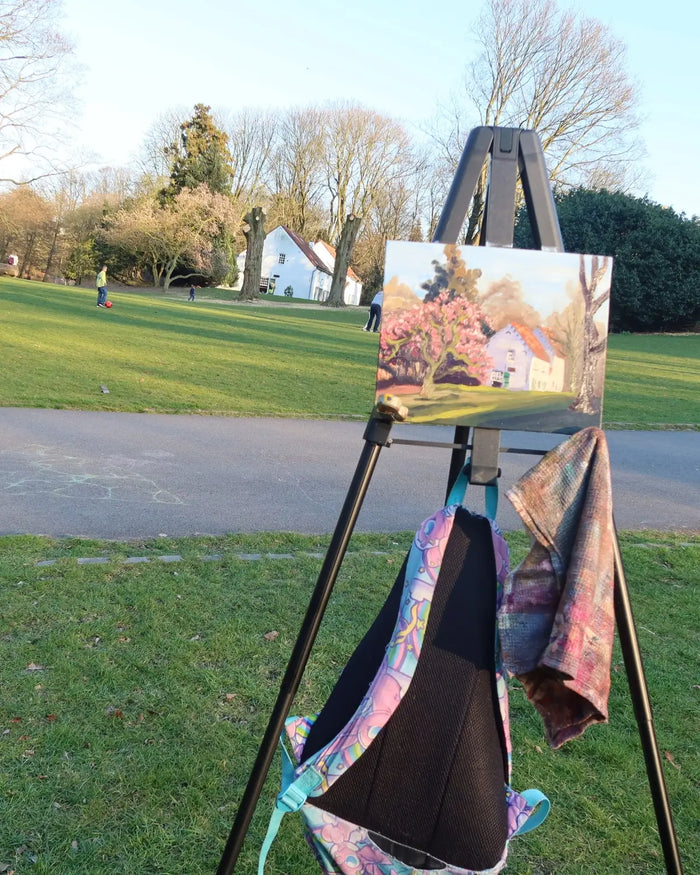 橡膠腳墊抓握各種地面,確保戶外作畫時的穩定。