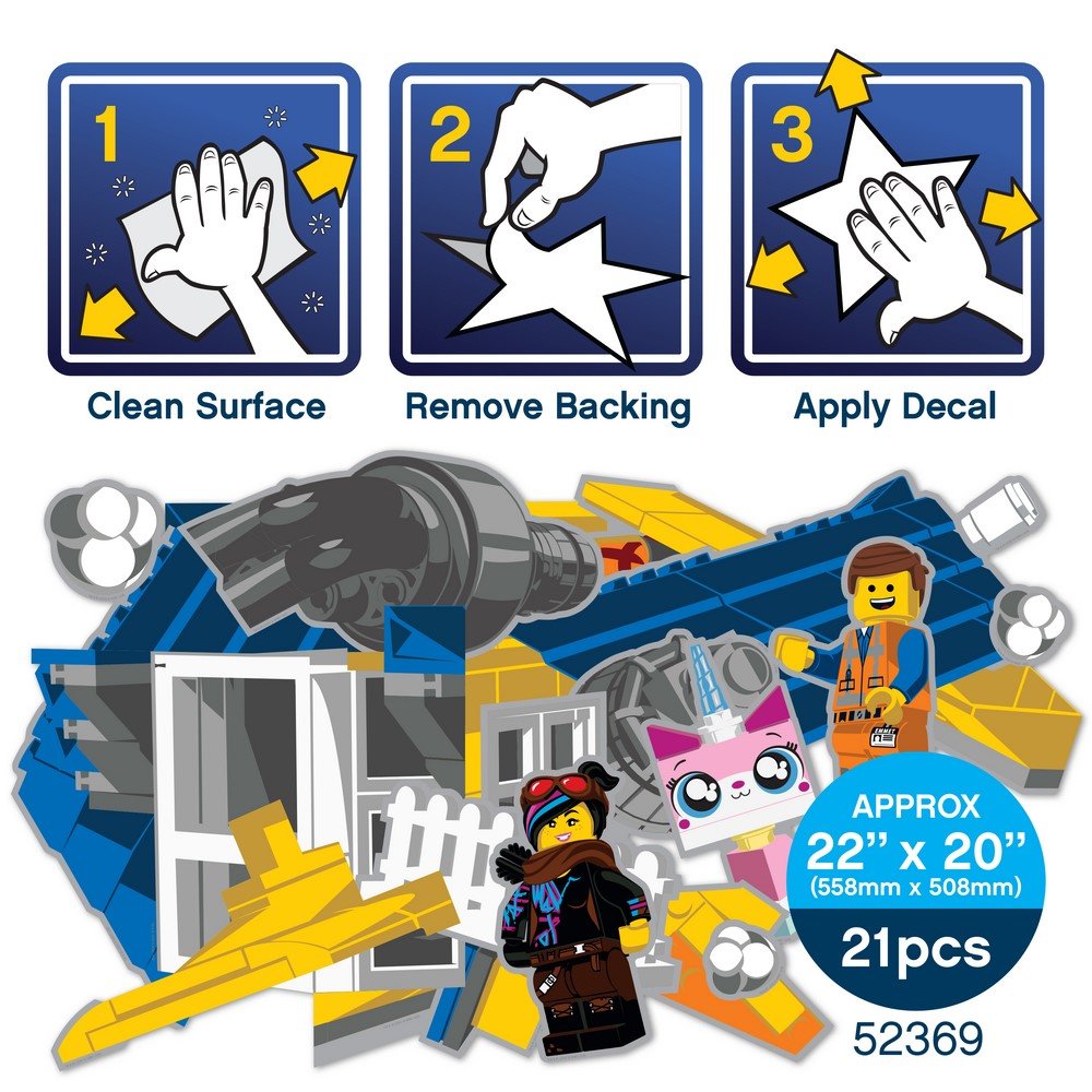 可重覆黏貼的拼圖靜電貼,安裝容易,一撕一貼,將空間瞬間變得充滿趣味與創意,帶來新面貌。以樂高玩電影2的主要人物所設計的拼圖靜電貼,讓孩子在拼貼玩樂中,訓練邏輯思考能力,獲得滿足感與成就感。