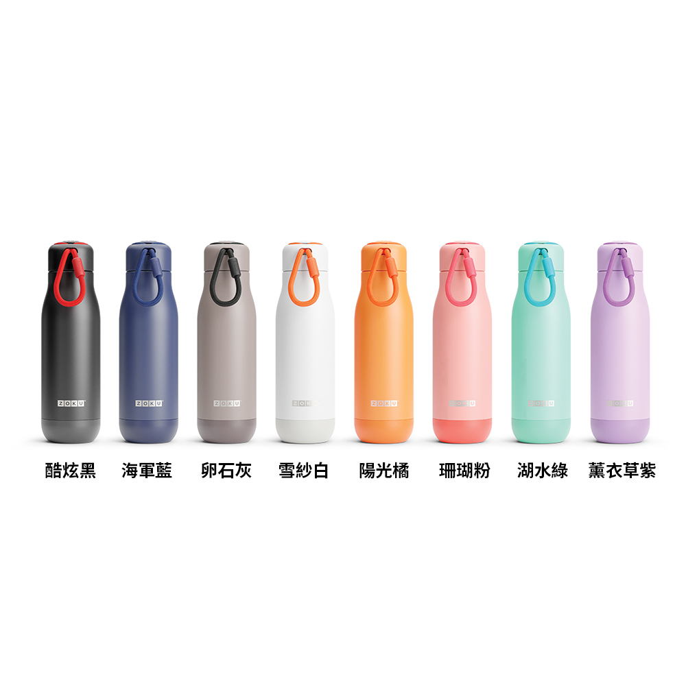 ZOKU霧面款真空不鏽鋼保溫瓶提供您溫熱或是冰涼的飲品,端看您的喜好!獨家的蓋子旋緊設計,不用額外的按壓式出水按鈕。流線型的瓶身與質感霧面塗層,加上多樣化的顏色選擇,讓您的飲水生活時尚滿分。